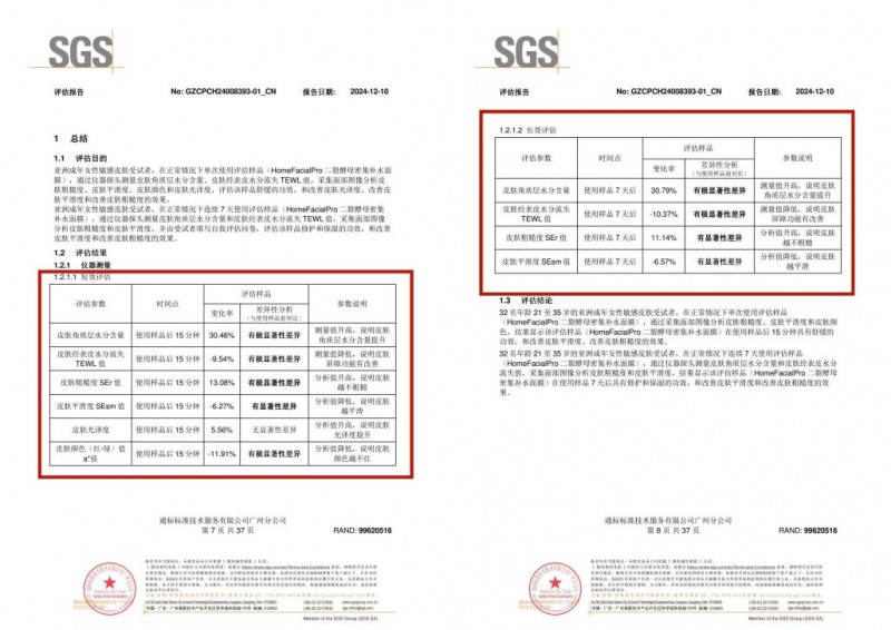 为了考证面膜的灵验性,hfp找了全球有名功效实测机构SGS,对32名亚洲敏肌受试者进期骗用评估(讲演编号GZCPCH24008393-01_CN),截止走漏——